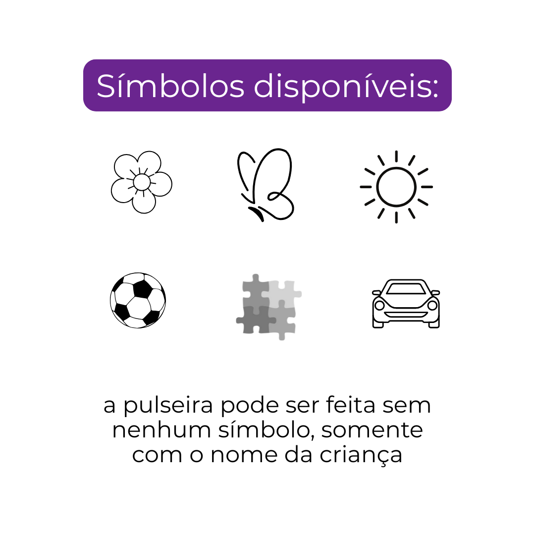 Após feito isso, deve informar qual símbolo quer na pulseira (na última foto temos as opções de símbolos disponíveis, não fazemos outros). Caso não queira nenhum símbolo, basta não responder.